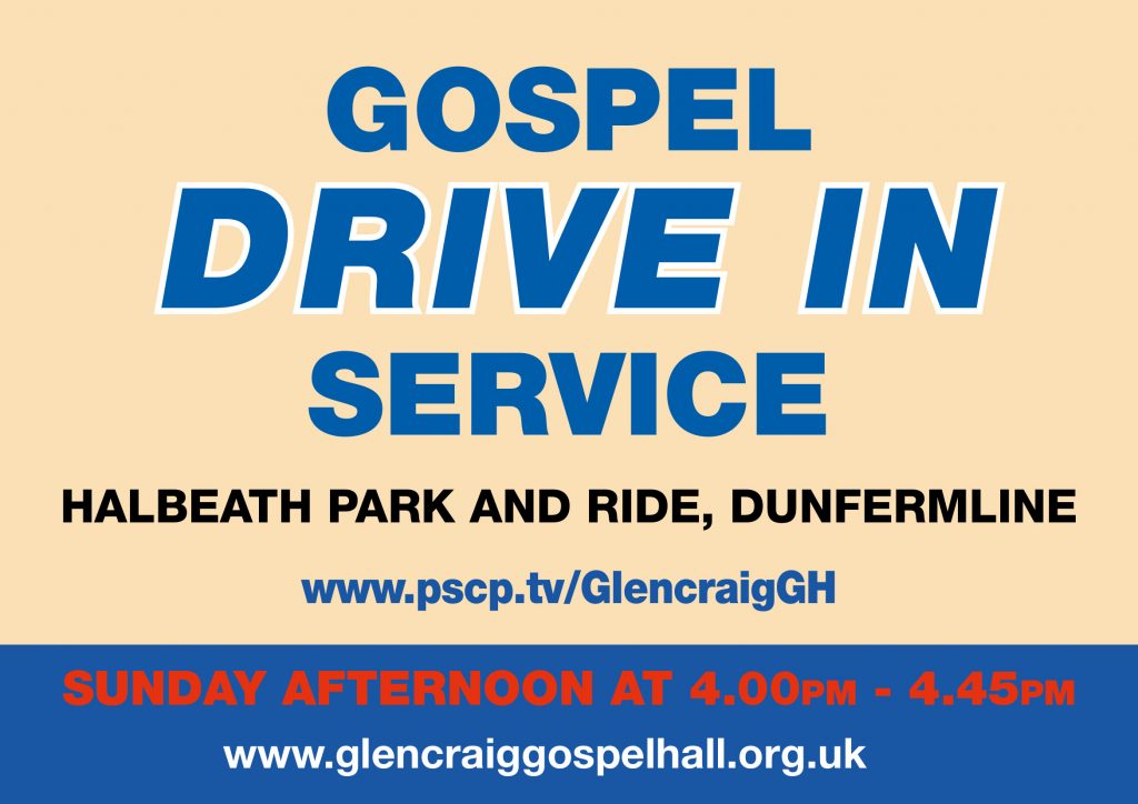 We are delighted to have been given permission by Fife Council and the relevant authorities to move the drive-in gospel meetings to the park-and-ride car park at Halbeath, Dunfermline. For details see the flyer below.